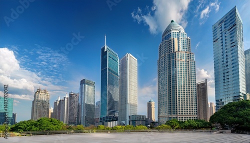 Fototapeta premium skyline showing several prominent buildings and hotels under a blue sky