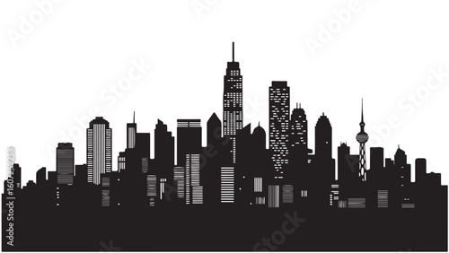 © Zulfa, Naklejka premium Skyline silhouette of a modern urban city on a white background, vector illustration.