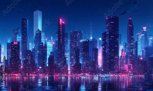 © Olha, Fototapeta premium skyline with beautiful lights at night
