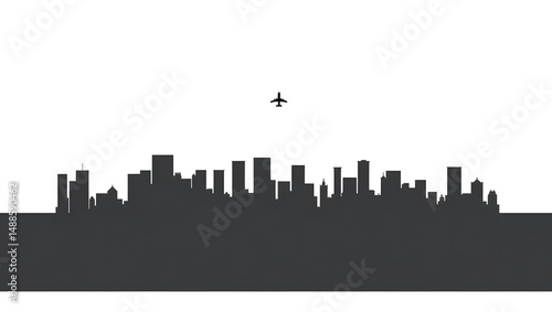 © Mohammad Shahin, Fototapeta premium skyline with flying airplane