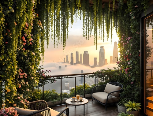 Obraz premium Skyscraper Balcony with Vertical Forest and City View