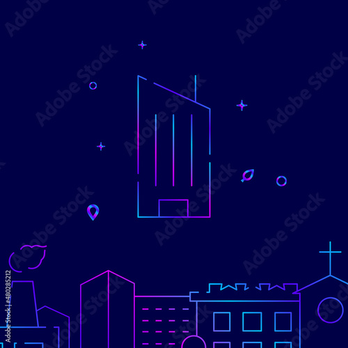 © Ivan Burchak, Fototapeta premium Skyscraper gradient line vector icon, simple illustration on a dark blue background, cityscape buildings related bottom border.