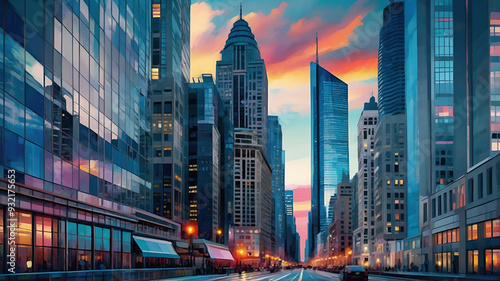 © Dwi, Obraz premium skyscraper office building abstract backgrounds illustration
