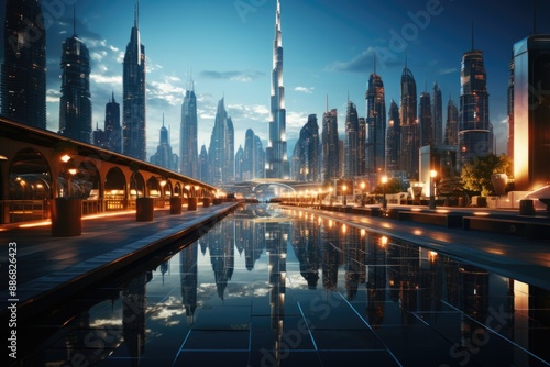 © JONATAS, Fototapeta premium Skyscraper painting at sunset, generative IA