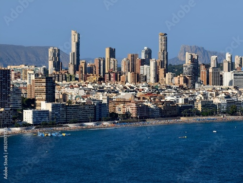 © Vladimir, Fototapeta premium skyscrapers along sandy beaches, lively beachfront area featuring highrise buildings and leisure