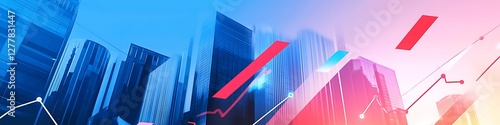 © MASJAB, Fototapeta premium Skyscrapers and Abstract Financial Growth Charts