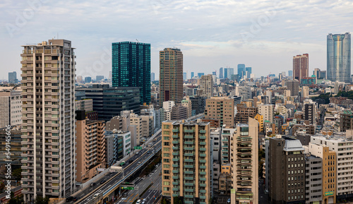 Obraz premium Skyscrapers and highways through Minato, Tokyo, Japan