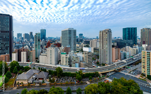 © Tierney, Obraz premium Skyscrapers and highways through Minato, Tokyo, Japan