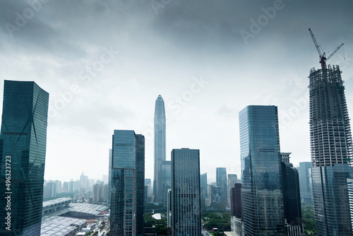 © xy, Obraz premium Skyscrapers and unfinished building in the city