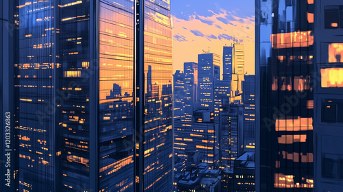 Obraz premium Skyscrapers in Downtown City with Modern Architecture at Dusk