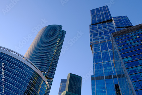 Obraz premium Skyscrapers in Moscow, the blue sky, the sunset