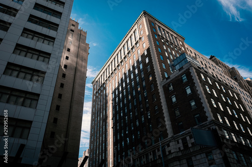 © MG, Naklejka premium skyscrapers in the city manhattan new york hotel real estate urban exploration discover walking sign rooms apartment rental leasing architecture building