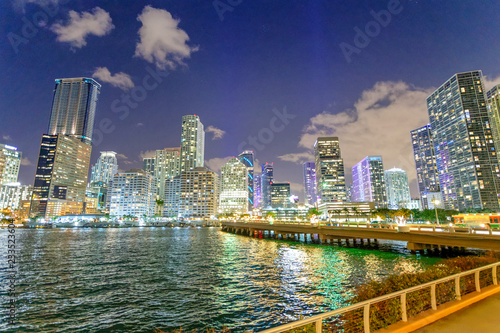 © jovannig, Fototapeta premium Skyscrapers of Miami from Brickell Key at night