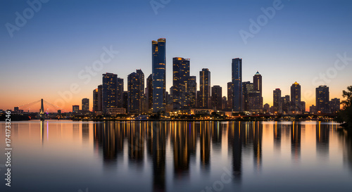 © Cevdet Kaan Kilic, Fototapeta premium Skyscrapers Reflected in Water at Sunset