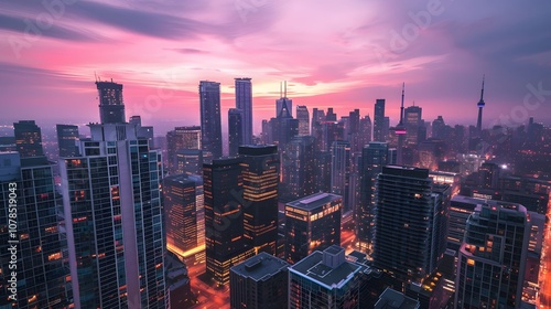 Fototapeta premium Skyscrapers rising gradually against a timelapsed cityscape AI generated illustration