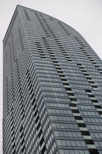 © eugen, Naklejka premium skyward view of L‑Tower, a residential skyscraper designed by Daniel Libeskind, completed in 2016, located at 8 The Esplanade, Toronto