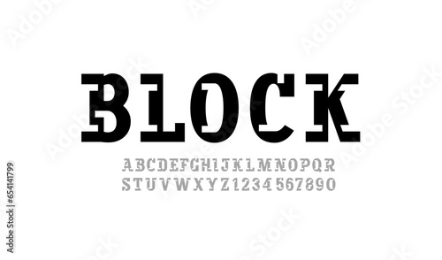 Obraz premium Slab serif font alphabet, cutting block letters from A - Z and numbers from 0 - 9, vector illustration 10EPS
