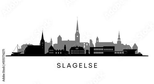 © godsfavoritearts, Fototapeta premium Slagelse Skyline Denmark Vector Silhouette.