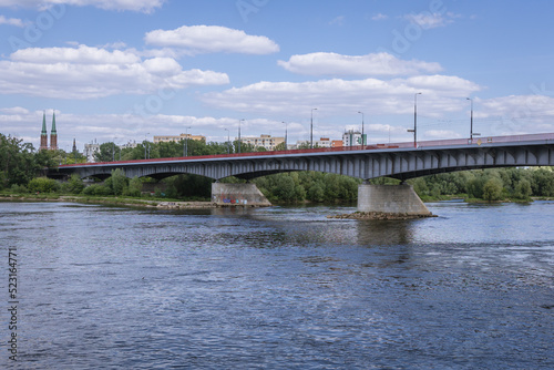 © Fotokon, Fototapeta premium Slasko Dabrowski Bridge over Vistula River in Warsaw city, Poland