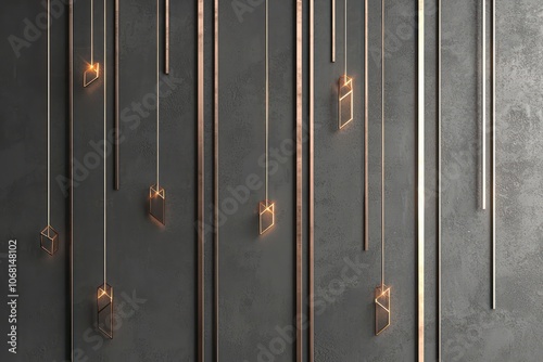 Fototapeta premium Slate gray and rose gold geometric accents in a minimalist luxury wallpaper,...