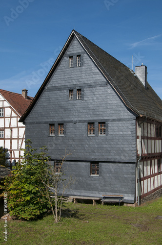 © Bertold Werkmann, Fototapeta premium Slate shingled wall at half-timbered house