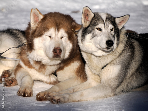 © Andrea Izzotti, Obraz premium sled dog husky relaxing on the snow