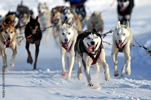 © Izanbar MagicAI Art, Naklejka premium sleddog team running to you