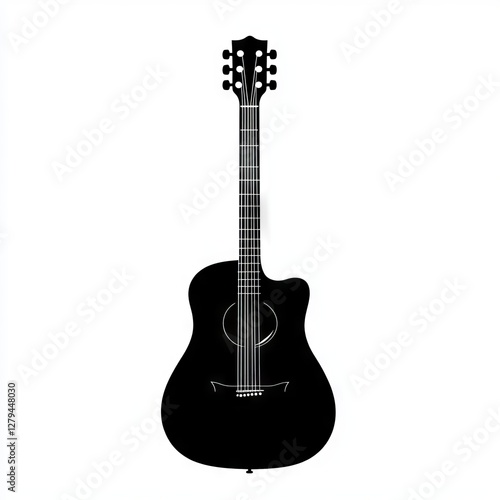 Obraz premium Sleek black acoustic guitar silhouette against a stark white background.