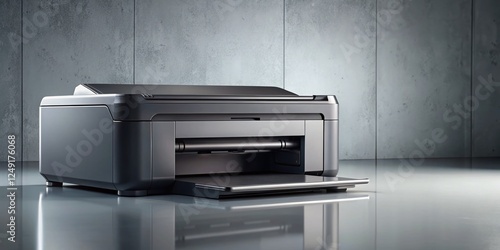 Fototapeta premium Sleek Black and Grey Office Printer with Ample Copy Space - High-Resolution...