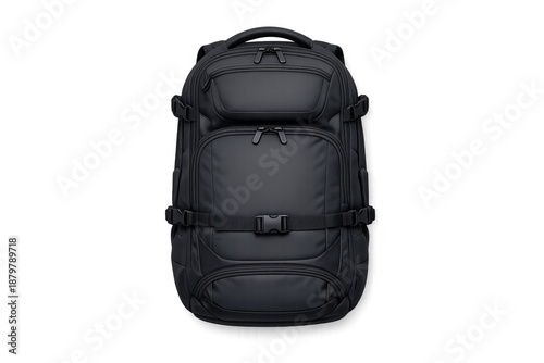 © Ophelia, Naklejka premium Sleek black backpack on gradient background for travel and outdoor adventure design