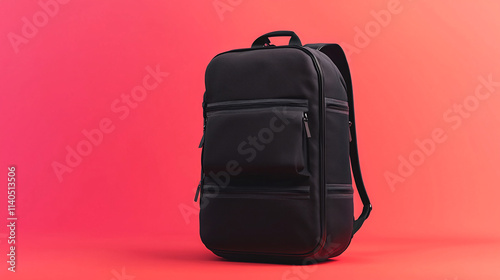 Naklejka premium Sleek black backpack, ready for adventure! Perfect for travel, work, or...