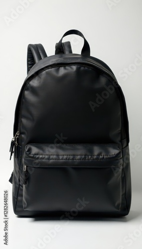 © Anukul, Naklejka premium Sleek black backpack, zipper closure, adjustable strap , practical, climbing