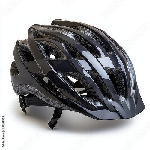 Fototapeta premium Sleek black bicycle helmet; aerodynamic design; textured shell.
