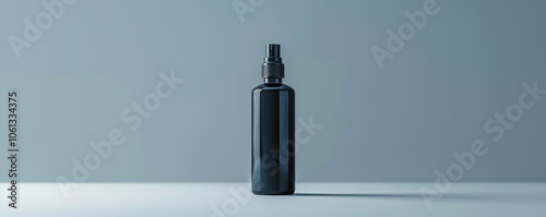 Fototapeta premium Sleek black bottle with modern design, perfect for skincare products. This minimalist container adds elegance to any shelf or vanity, ideal for sunscreen or other liquids