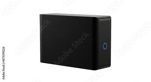 © Anisah, Obraz premium Sleek black box with a minimalist design, perfect for illustrating modern technology solutions and