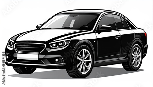 Fototapeta premium Sleek Black Car Illustration with Detailed Design Elements.