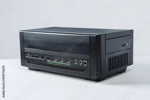 © Valentin, Obraz premium Sleek Black Computer Case with Multiple Ports and Vents