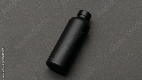 © DEER FLUFFY, Fototapeta premium Sleek Black Container on Mottled Surface Minimalist Still Life, Dark Tones.