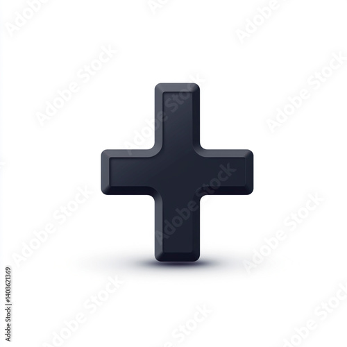 Fototapeta premium Sleek black cross symbol on a white background, rendered with subtle shadows.