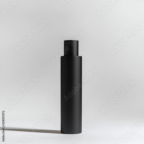 Fototapeta premium Sleek black cylindrical bottle, perfect for showcasing your product. Minimalist design, clean background.