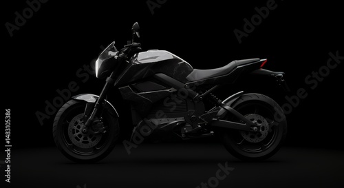 © goesti, Fototapeta premium Sleek Black Electric Motorcycle Illuminated Against a Dark Dramatic Background