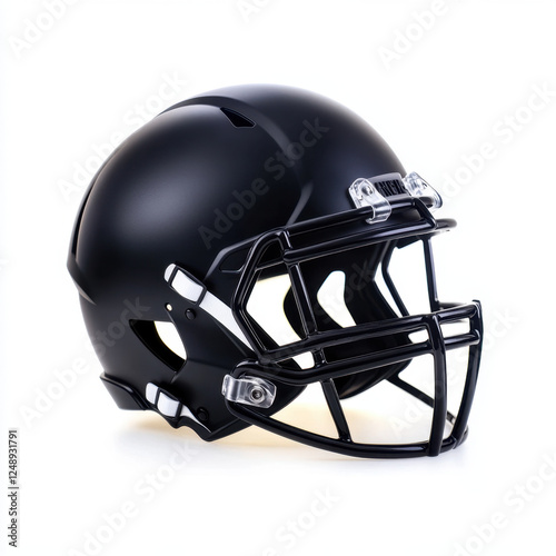 © Keopaserth, Naklejka premium sleek black football helmet isolated on white background, showcasing its modern design and protective features. Perfect for sports enthusiasts and athletes