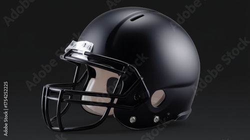 Naklejka premium Sleek black football helmet with modern matte finish and clean lines, front...