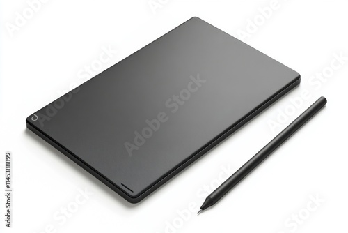 Fototapeta premium Sleek Black Graphics Tablet and Stylus on White Background