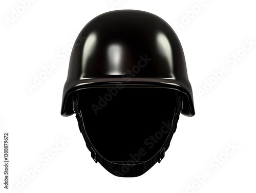 Fototapeta premium Sleek black helmet sharply defined against bright white background displays...