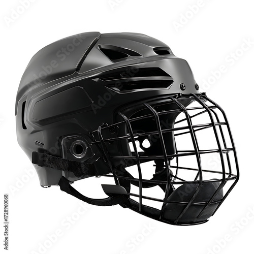 © Tees Craftsman, Naklejka premium Sleek black hockey helmet with protective cage for intense play