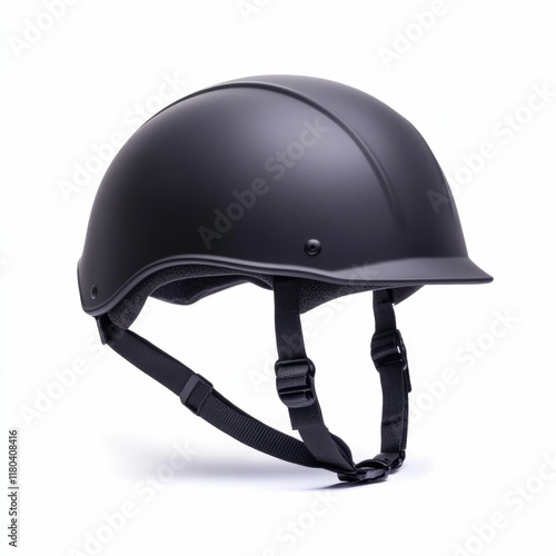 Naklejka premium Sleek Black Matte Sports Helmet on White Background Modern Protective Gear...