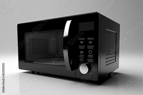 © Andrii , Fototapeta premium Sleek Black Microwave on White Background