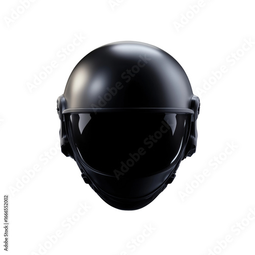 © Oleksii, Fototapeta premium Sleek black motorcycle helmet with visor against black background