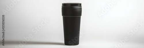 © Tho in your picture, Fototapeta premium Sleek Black Reusable Tumbler on a Minimalist White Background Studio Shot